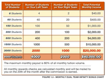 | In an organisation like this the only benefactors are the owners of the company who will keep making the money regardless of whether the members are getting any monetary value as business participants, in addition to the tuition materials.